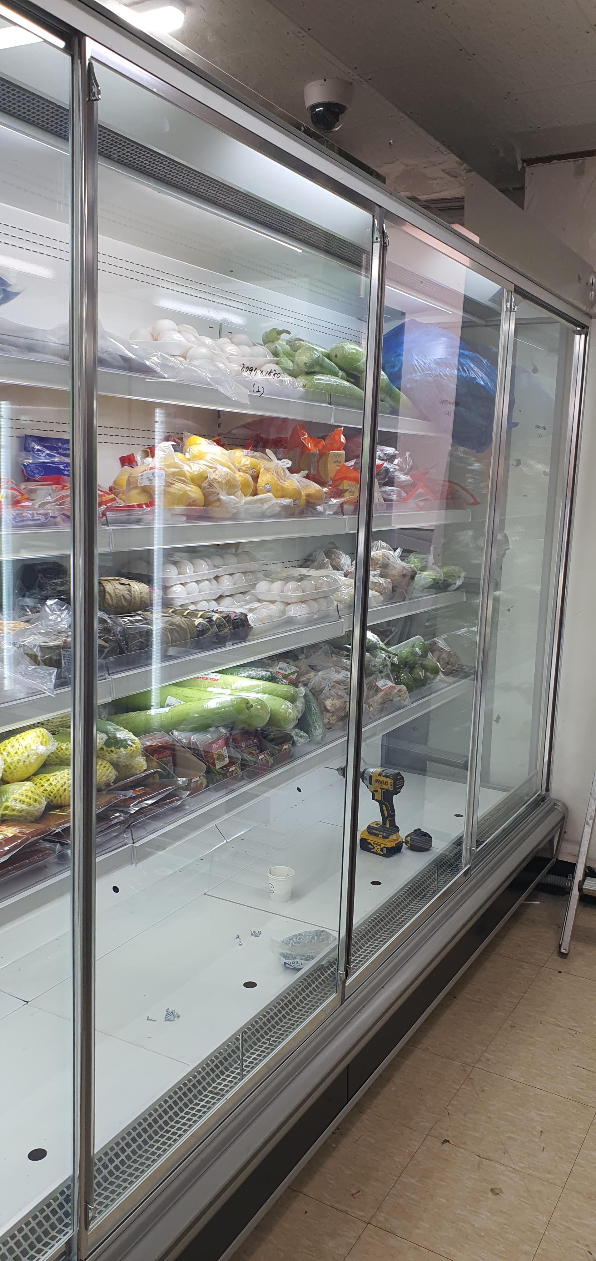 마트.오픈쇼케이스.워커인쿨러.철거.이전설치.배관공사.전기배선공사.슬라이딩 도어 신규설비 시공사례