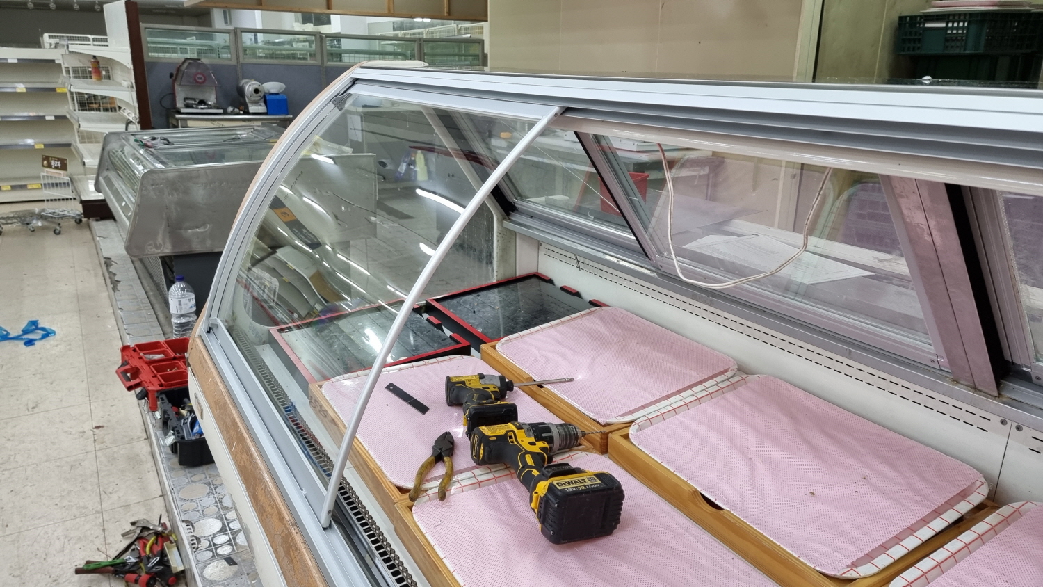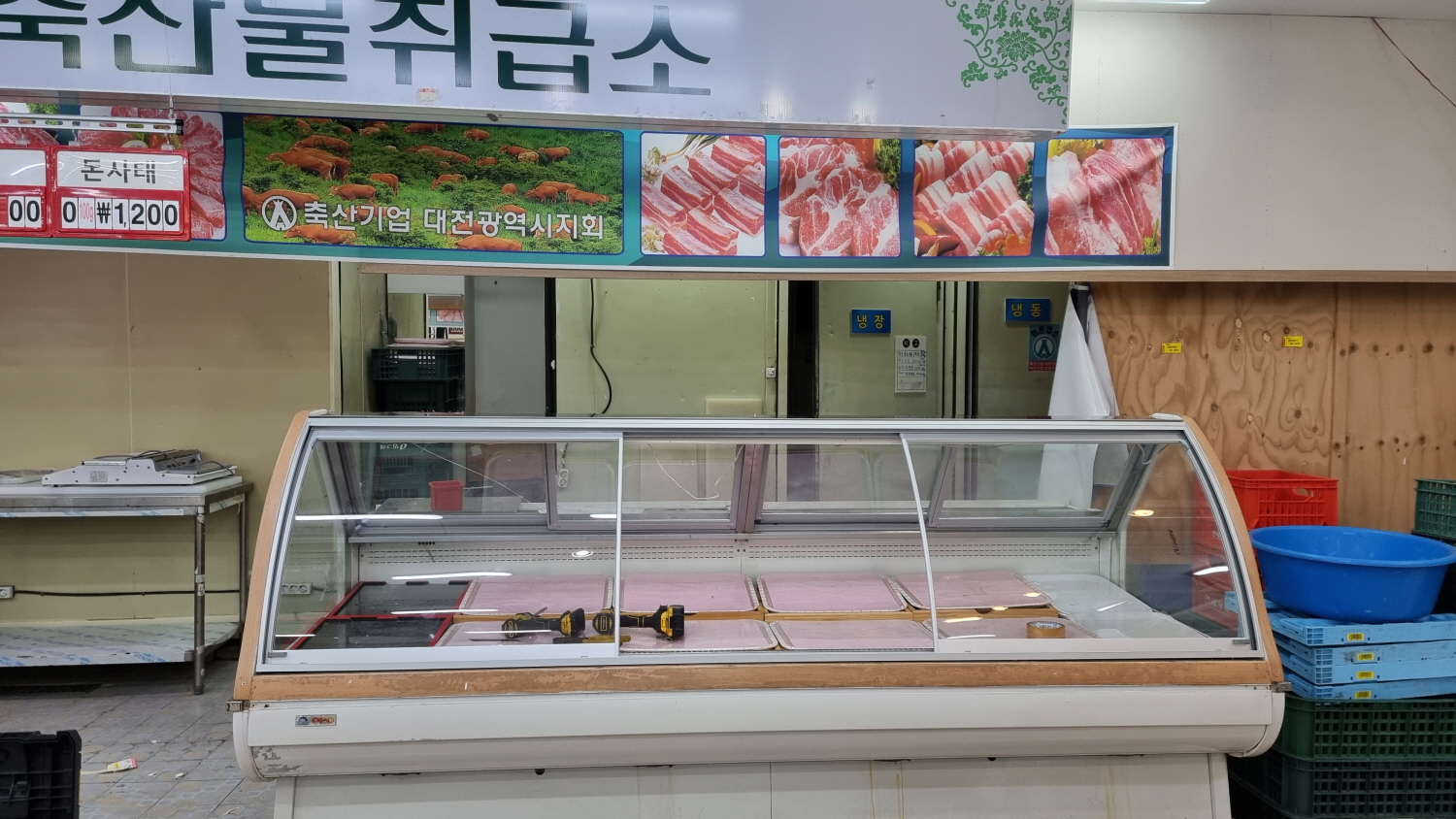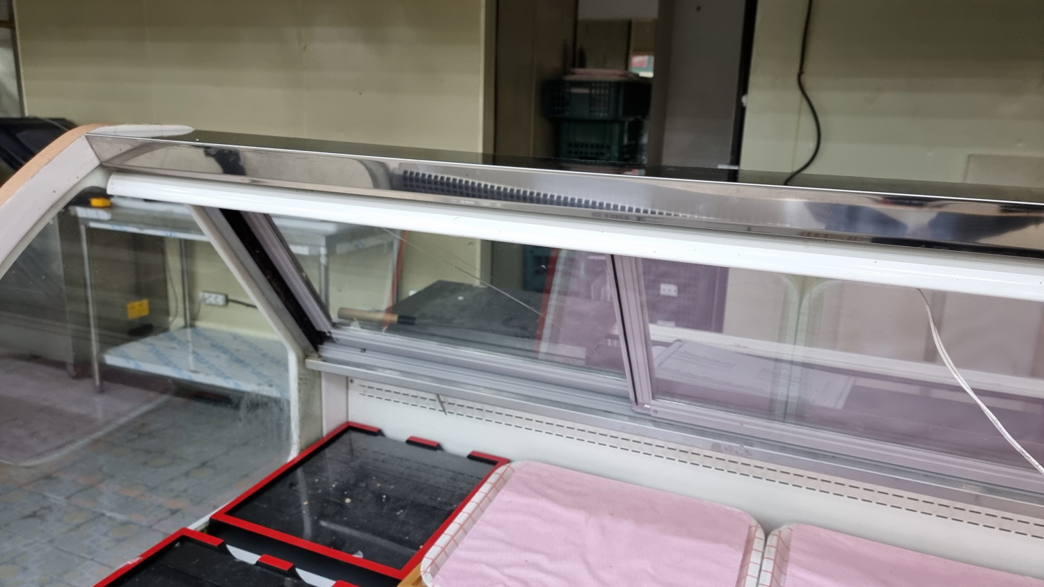 오픈쇼케이스,냉동평대,정육점 정육대면쇼케이스 슬라이딩 도어 개조작업 시공사례(전국출장설비 전문업체)